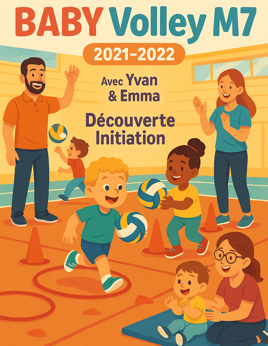Le BABY Volley M7, câest une sĂ©ance hebdomadaire conçue spĂ©cialement pour les tout-petits nĂ©s en 2021 et 2022.